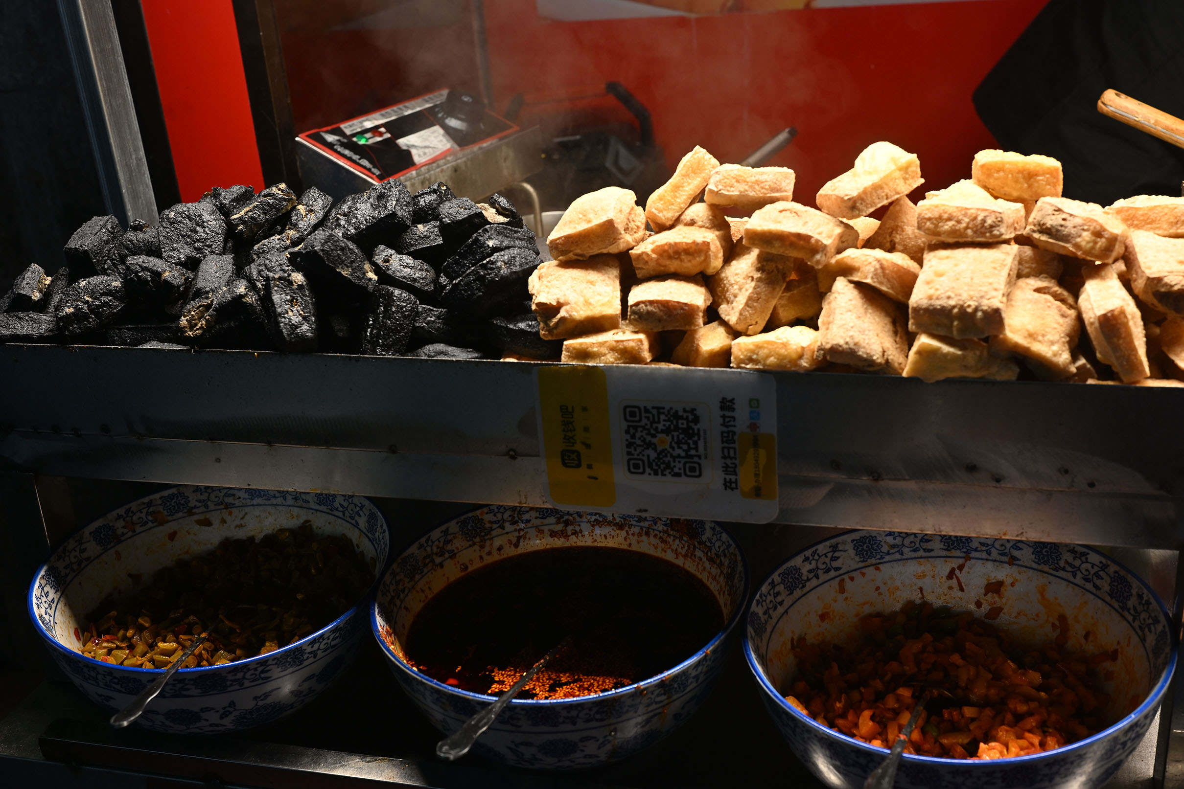 - ผมซื้อเต้าหู้เหม็นทั้งแบบสีดำและสีเหลืองสุกธรรมดามาทาน 30 หยวน รสชาติดี แต่น้ำจิ้มอร่อยสู้บ้านเราไม่ได้.