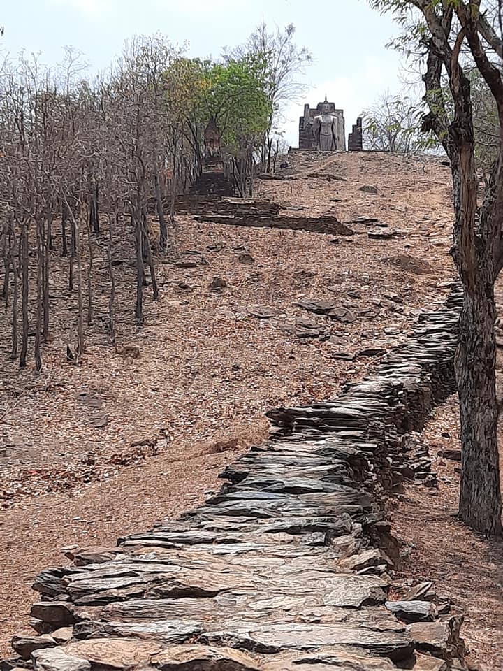 Situated on a mound 200 meters high, an ascent of 300 meters from the foot of the mound to the temple was paved with stone and this is how the temple got its name. Along the paved way, there is a small lotus bud chedi. This temple is well known for a large standing Buddha image mentioned in the stone inscription No.1, "...In the heart of the forest Aranyik, there is a beautiful large vihāra, a Buddha image called Phra Attharot in standing posture..." Saphan Hin temple is thought to be the temple to which King Ramkhamhaeng the great rode on a white elephant named Ruchakari to worship a Buddha image every Buddhist sabbath.01.