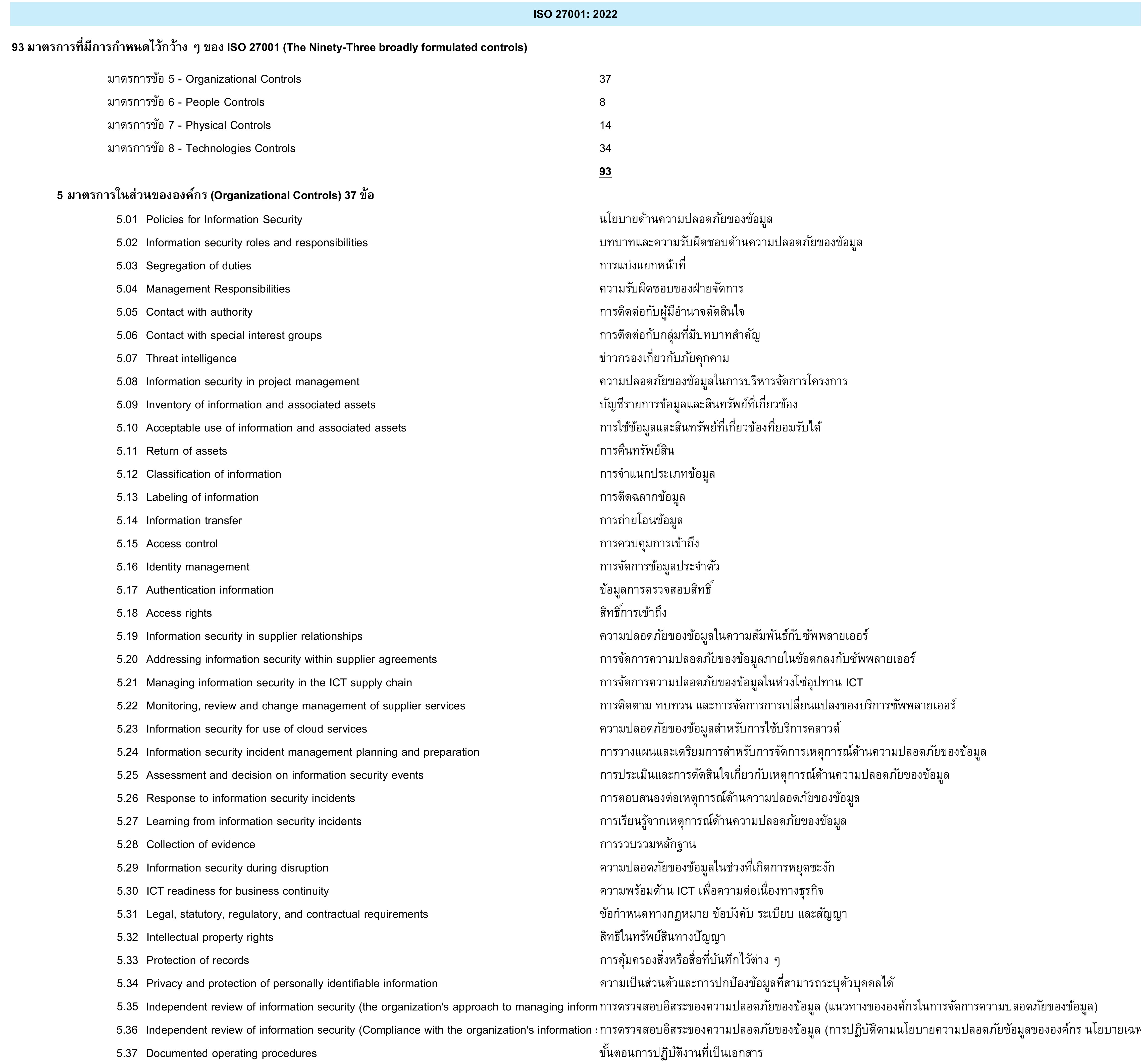 มาตรการข้อที่ 5 มาตรการในส่วนขององค์กร (Organizational Controls) มี 37 ข้อ.